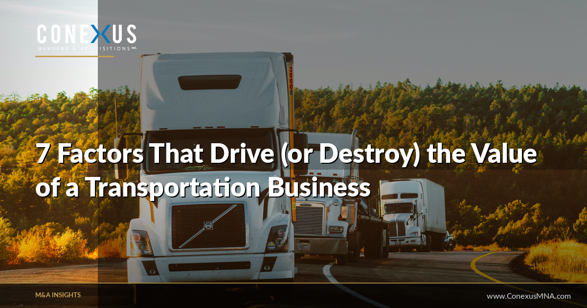 Below are the seven factors that have the greatest impact on transportation business value in this region. Some you can improve before a sale. Others require years of disciplined management. All of them matter to buyers.
